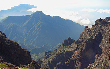 1954 unter Naturschutz gestellt, ist die Caldera de Taburiente einer der spektakulärsten und größten Erosionskrater der Welt. Fast 1700 Meter hoch reichen die messerscharf gezackten Zinnen der Kraterwand in den Himmel empor bis zur höchsten Erhebung der Insel, dem Roque de los Muchachos mit 2426 m Höhe.